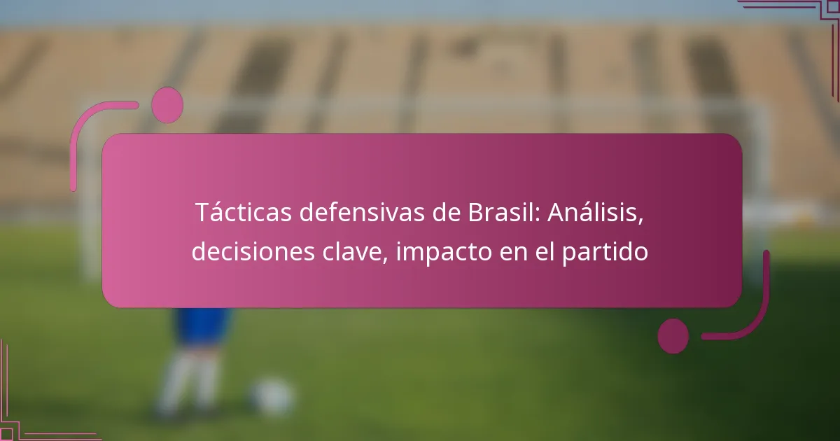 Las tácticas defensivas de Brasil en el fútbol se caracterizan por formaciones estructuradas y roles estratégicos de los jugadores que permiten una defensa resiliente y adaptable. Las decisiones clave tomadas por los entrenadores, incluidas las modificaciones tácticas y los cambios, juegan un papel crucial en la configuración del rendimiento del equipo contra diversos oponentes. La efectividad de esta defensa depende de una comunicación sólida, habilidades individuales y la capacidad de responder a las diferentes condiciones del partido.